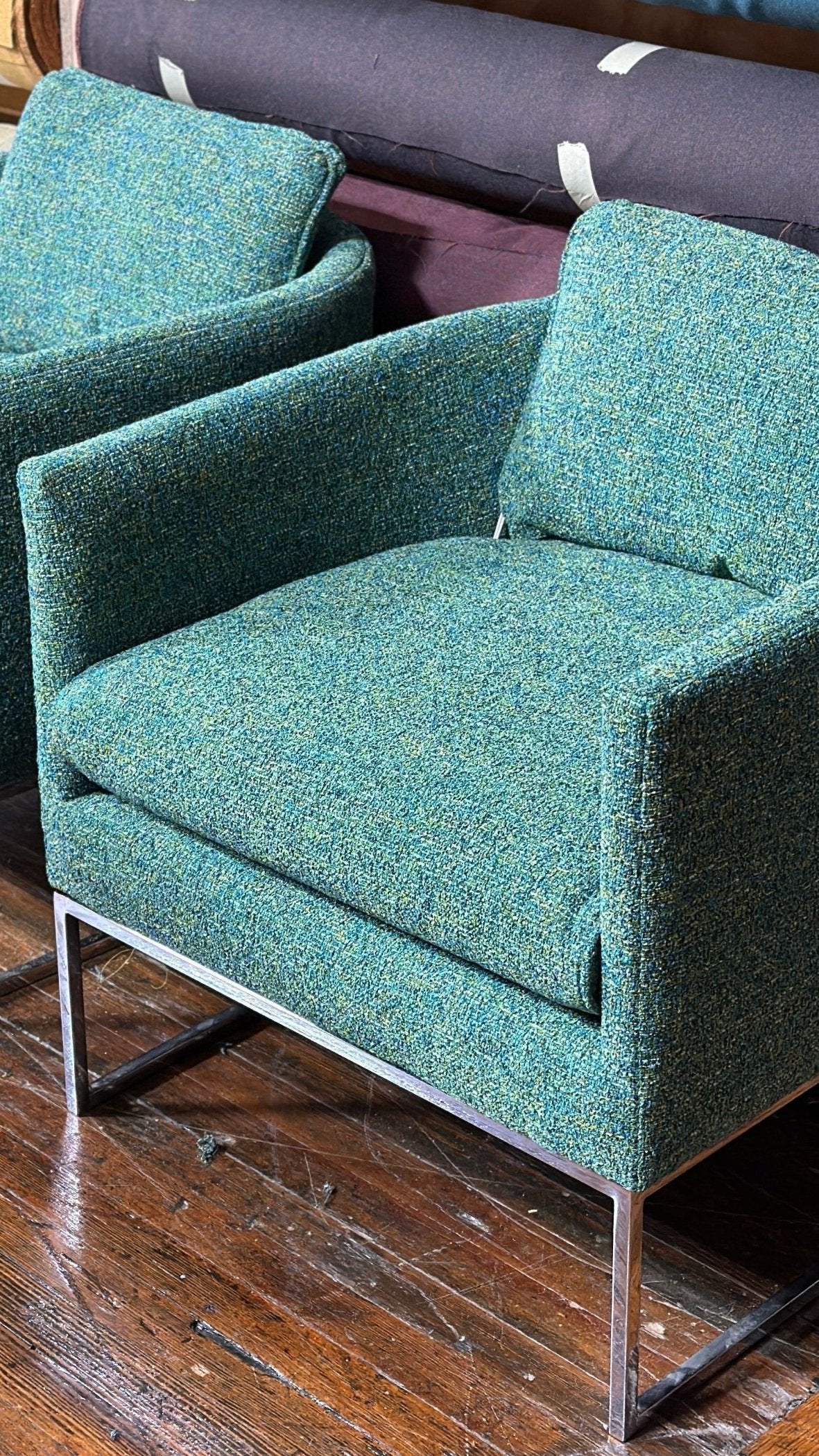 We will provide talk things through with you, provide a little additional context, and a quote for the upholstery labor and give a rough timeframe. Once you've decided to move forward, we will collect a deposit of 50% of the upholstery quote, plus any applicable taxes. We can then select fabric. We have in-stock options for fabric, or we can order upholstery fabric from a number of manufacturers like Knoll and Herman Miller. You can also bring in your own fabric. The cost of upholstery fabric is additional to the upholstery labor