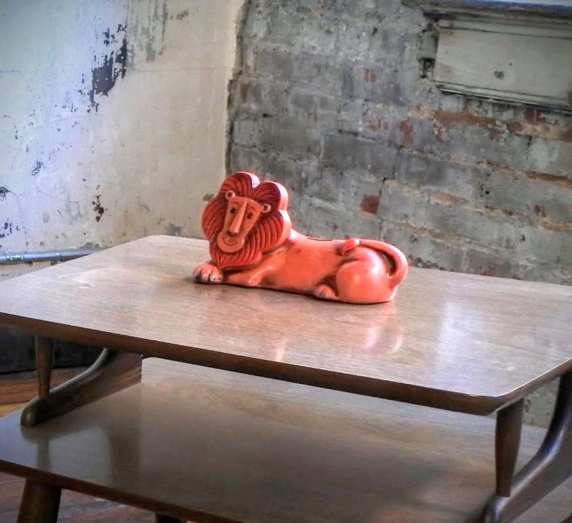 Kitschy Lion Chalkware Vintage Coinbank, in good vintage condition.