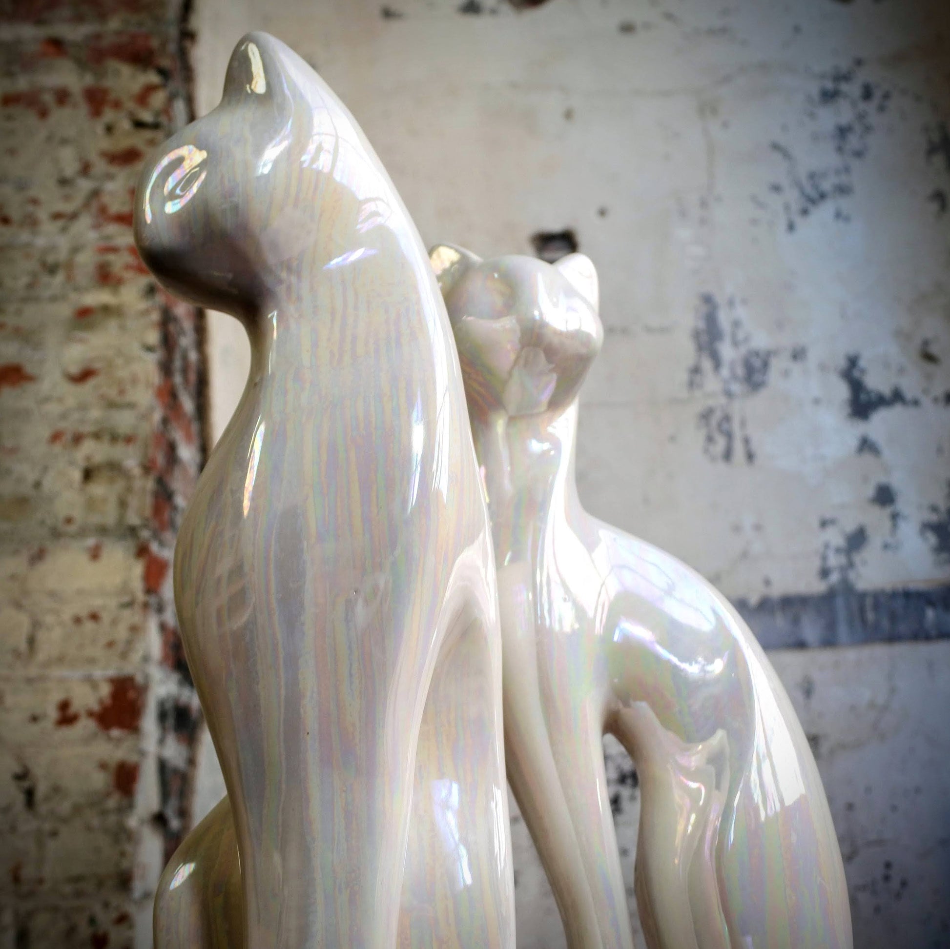 Pair of Iridescent Ceramic Cats